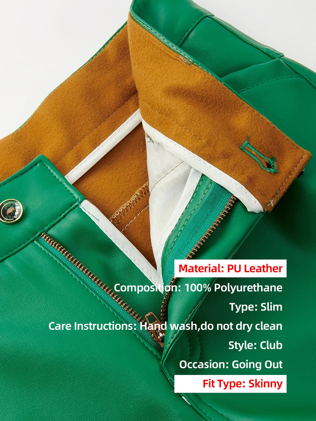 Men's Casual Chic High Stretch PU Leather Pants, Street Style Sexy Pants For Nightclub Party Dinner Performance K-pop