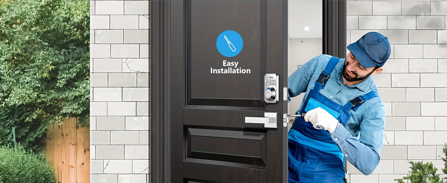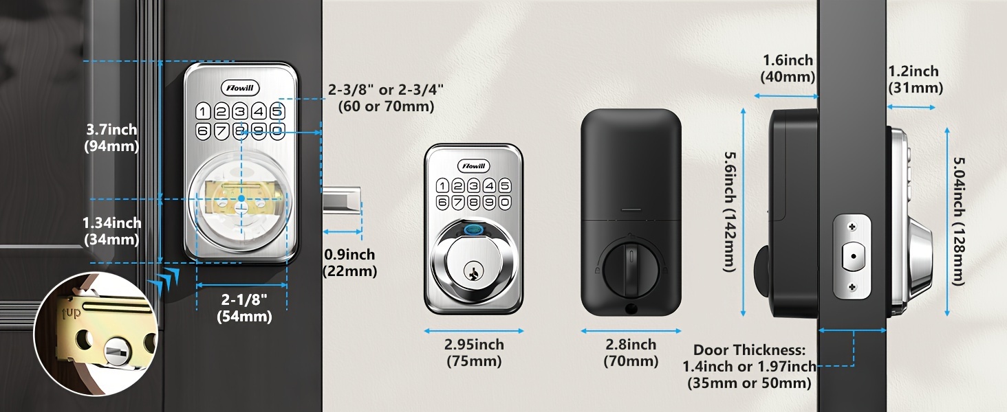 Keyless Entry Door Lock with 2 Lever Handles - Electronic Keypad Deadbolt, Auto-Locking, Anti-Peeping Password, Digital Smart Code, Brushed Aluminum, Battery-Powered (AA Batteries Included), US Standard, Smart Door Lock