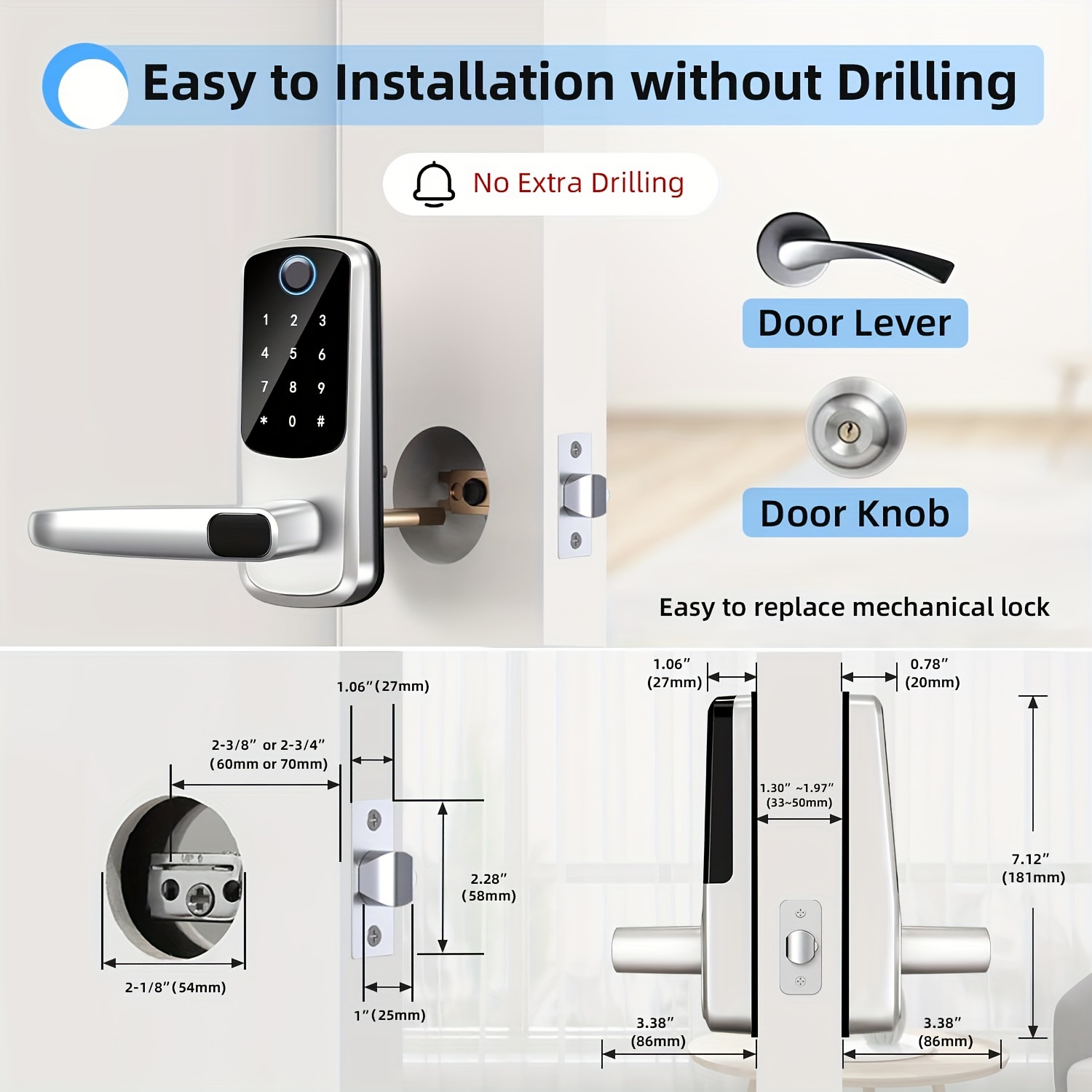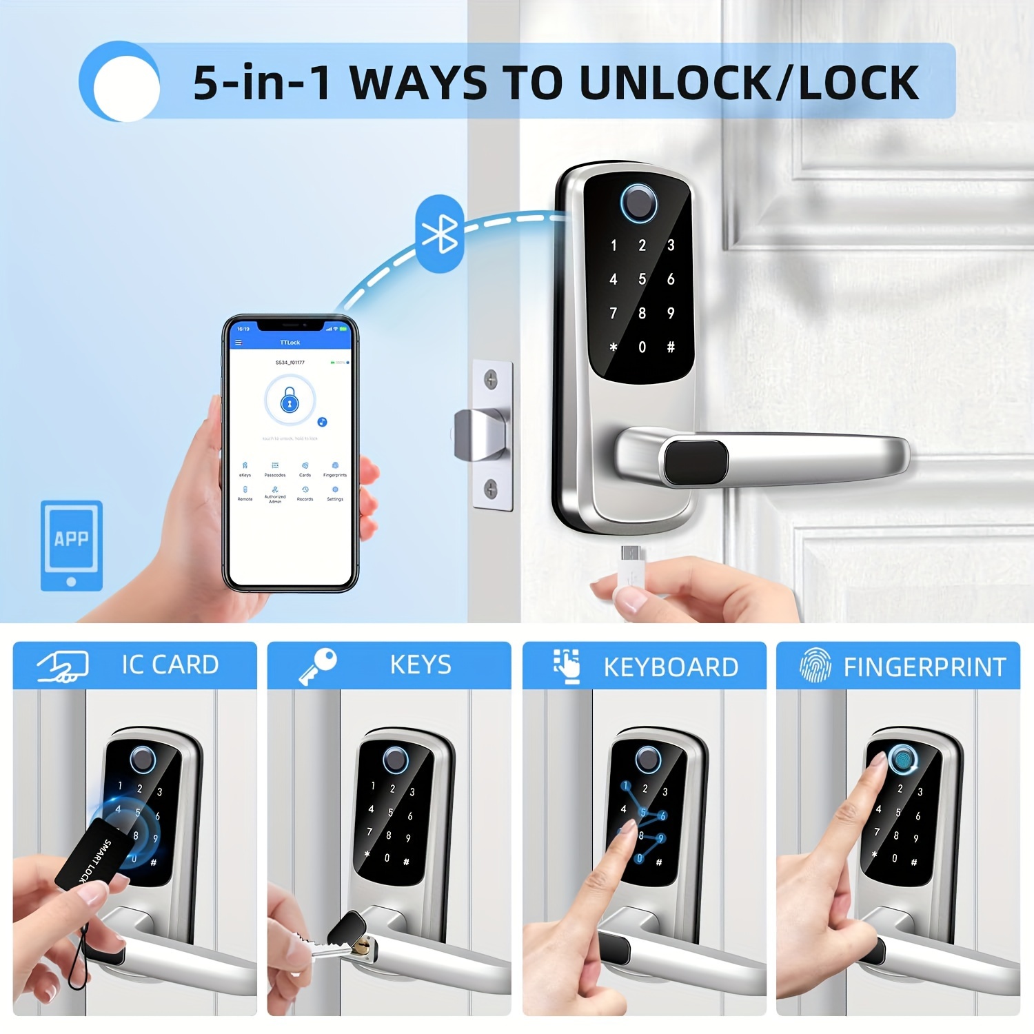Smart Door Lock With Handle, Keyless Entry Door Lock, Fingerprint Keypad Door Lock - Smart Locks For Front Door - Digital Electronic Door Lock With Code & APP Control