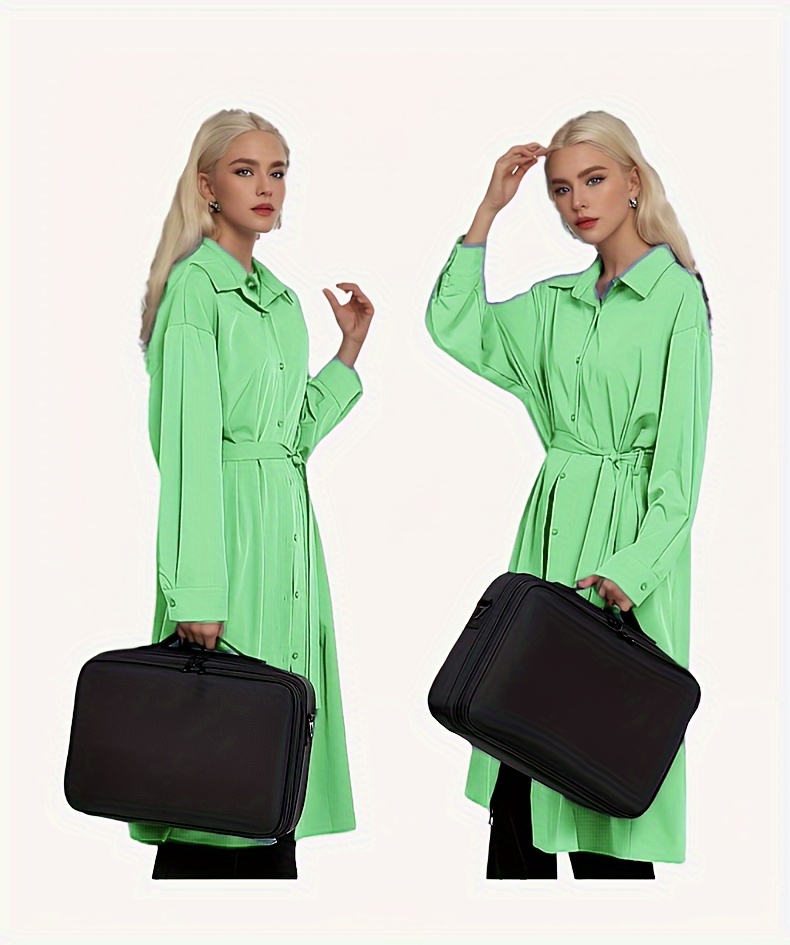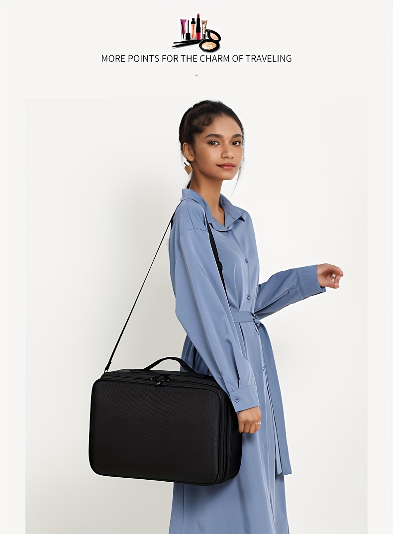 Professional Makeup Artist Cosmetic Organizer Case with Adjustable Dividers - Large Capacity Travel Beauty Suitcase, High Quality-like (No leaks), Portable with Carry/Shoulder Strap, for Women, Makeup Brushes, Toiletries, Jew
