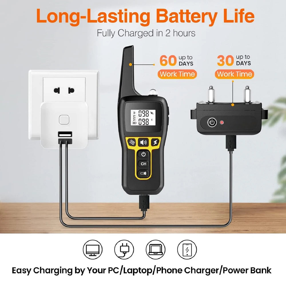 • Rechargeable :The collar is rechargeable, eliminating the need for frequent battery replacements and saving dog owners money in the long run.