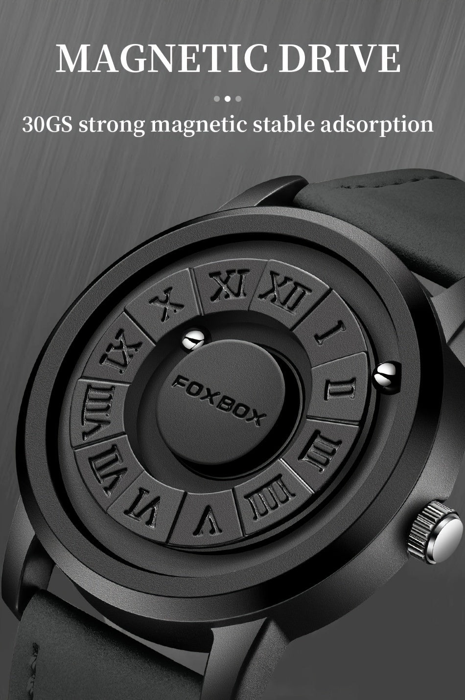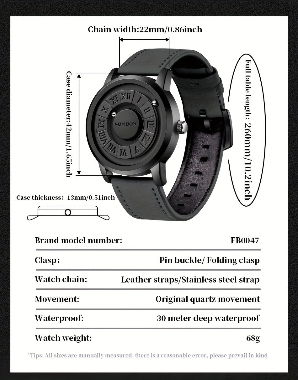 Mens Fashion Watch - Eye-Catching Cool Dial with Waterproof Rotating Magnetic Bead - Durable PU Leather Strap - Stylish Design for Fashion-Forward Gentlemen