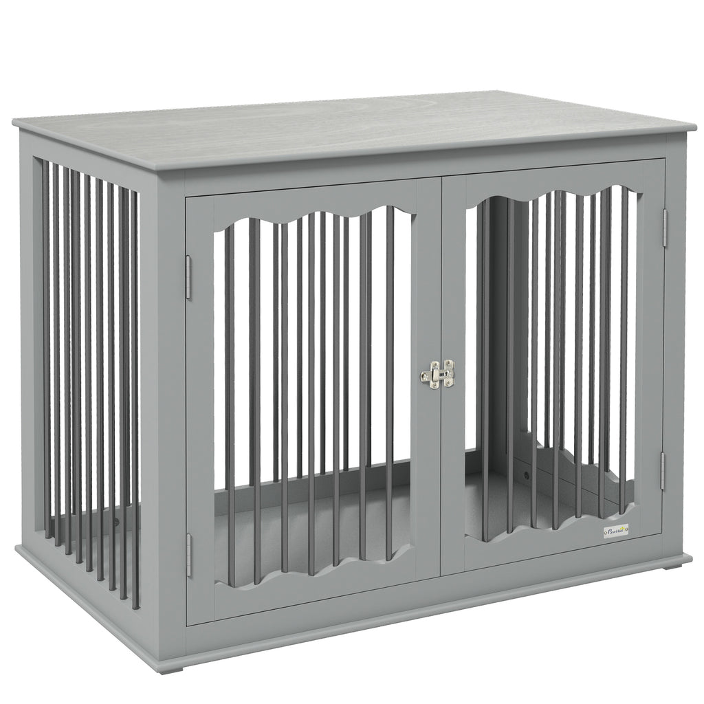 PawHut Dog Crate, End Table, with Three Doors, Locks, Latches for Large Dogs, Indoor Use - Grey