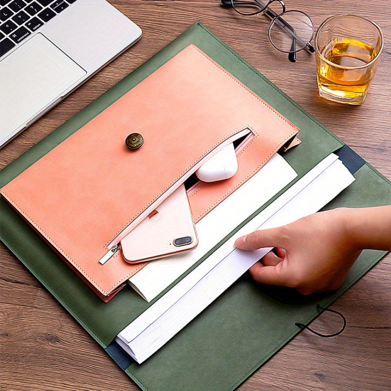 1PC High-Quality Faux Leather Business Document Bag - Spacious Folder Bag with A4 File Storage, Data Bag, and Receipt Storage for Business Professionals and Entrepreneurs - Durable, Stylish, and Organized