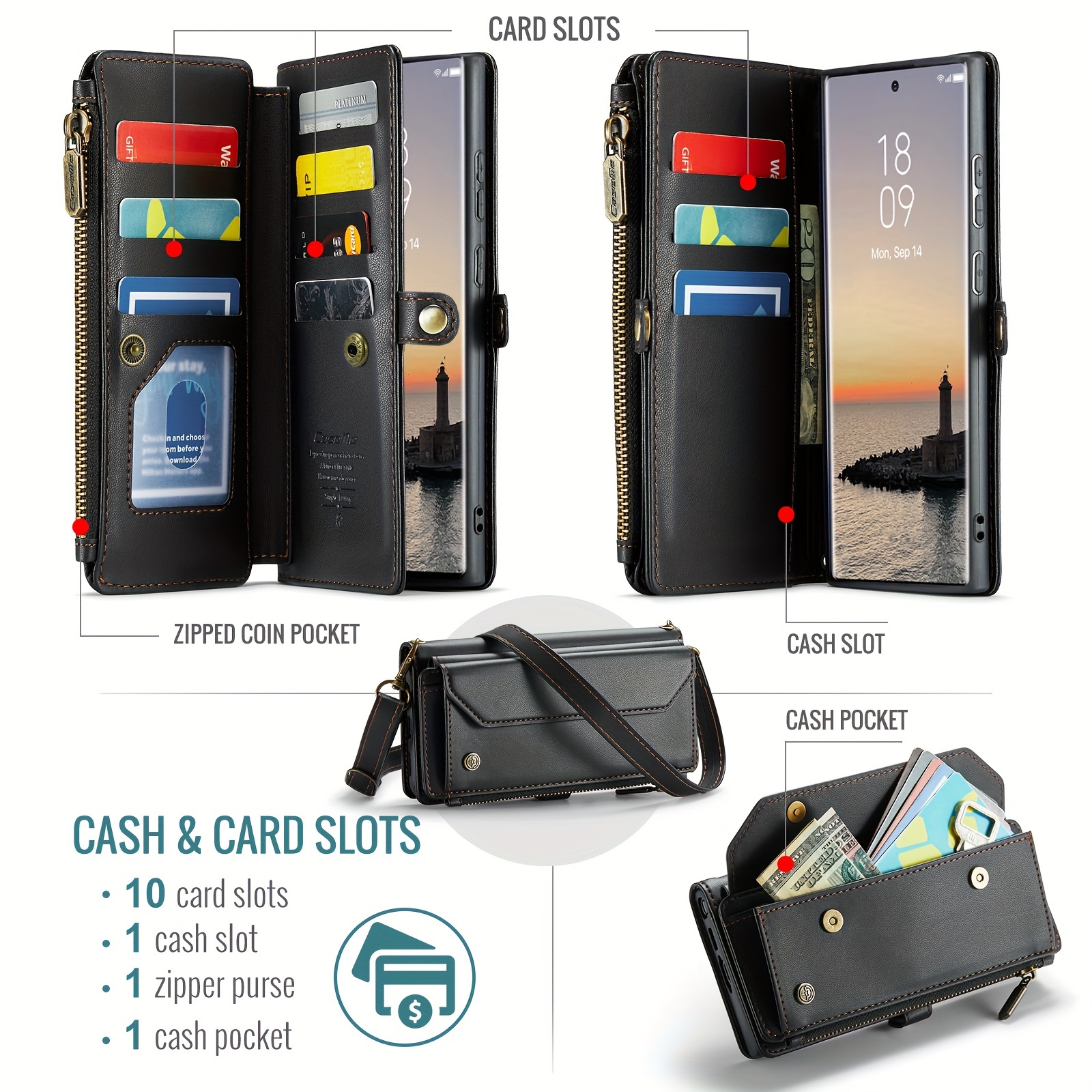Crossbody for Samsung Galaxy S23 S22 S21 Ultra S10 Plus A12 A13 A14 A22 A23 A24 A30S A50S A32 A33 A34 A51 A52 A53 A54 A71 A72 Case Wallet RFID Protection with 10-Card Holder Zipper Bills Slot, PU Leather Magnetic Flip Shoulde