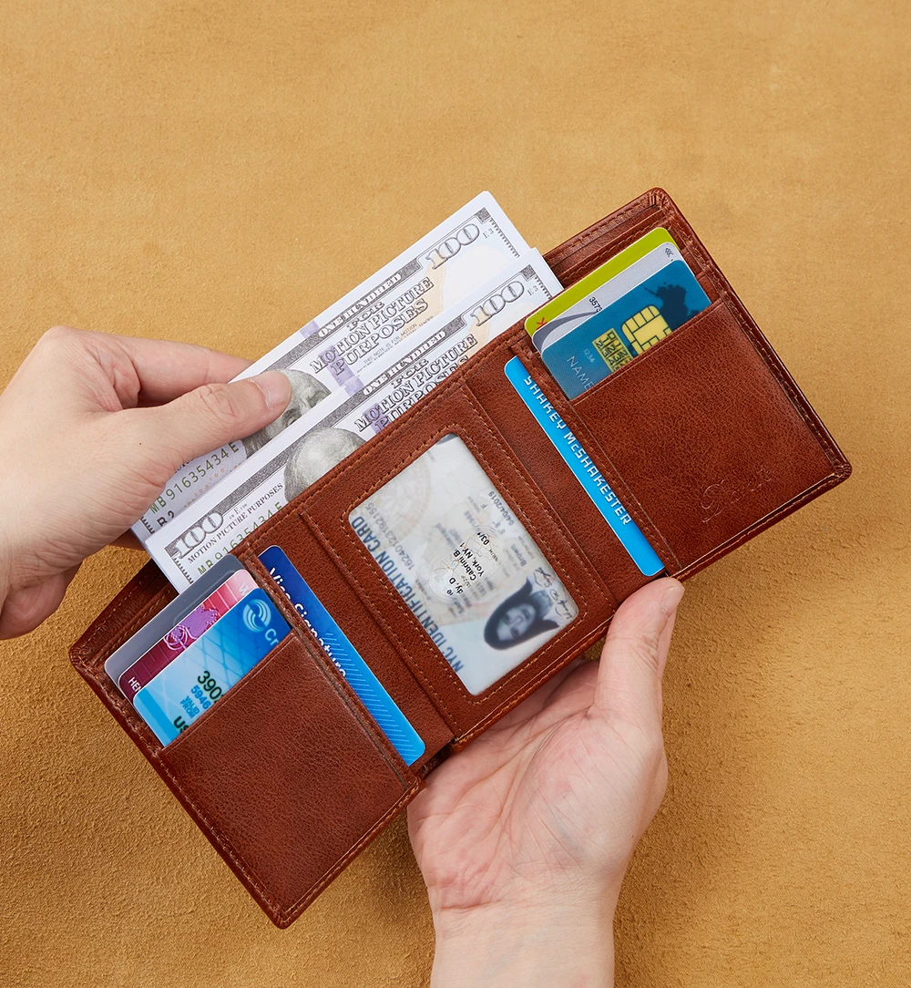 2025 Dante Retro Three Fold Genuine Leather Men's Wallet with Anti-Theft Card Swiping Head Layer Cowhide Wallets Multiple Card Slot