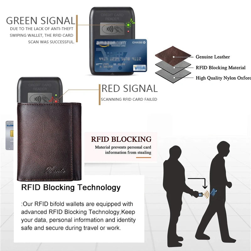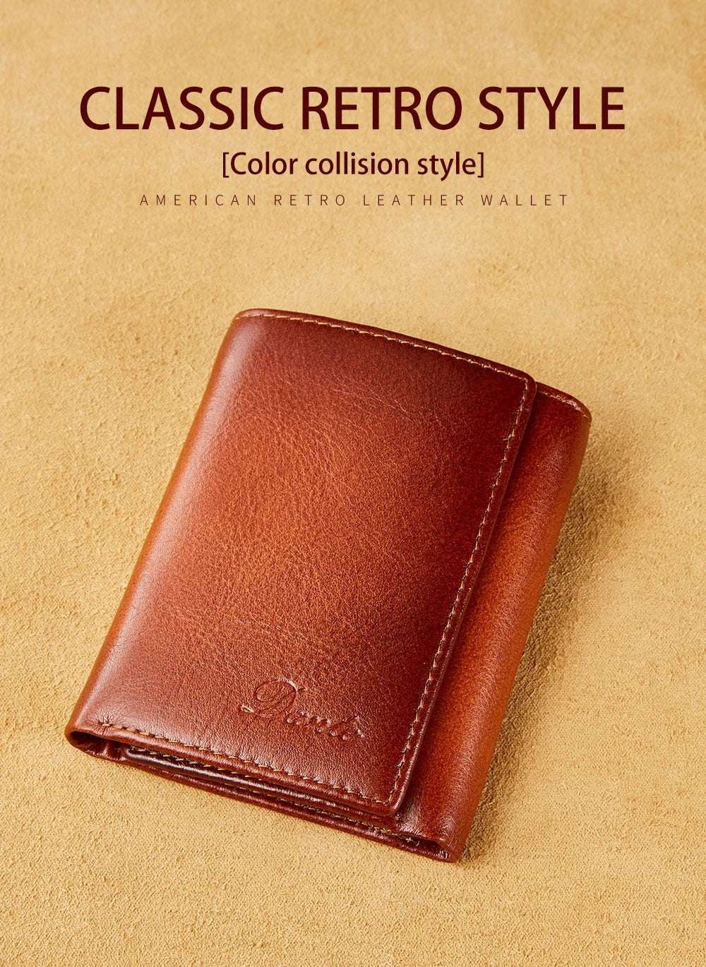 Dante Retro Three Fold Genuine Leather Men's Wallet with Anti-Theft Card Swiping Head Layer Cowhide Wallets Multiple Card Slot