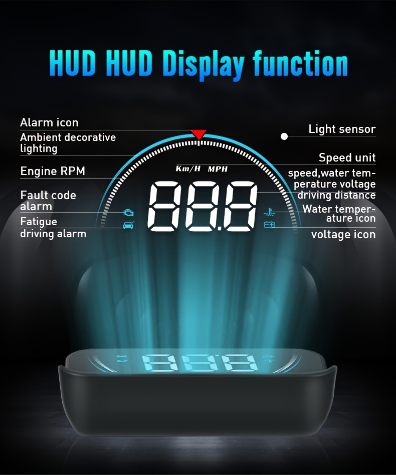 3. Easy to Install, Only need connect the HUD with Car OBD port by OBD cable, HUD will display when car engine on / off