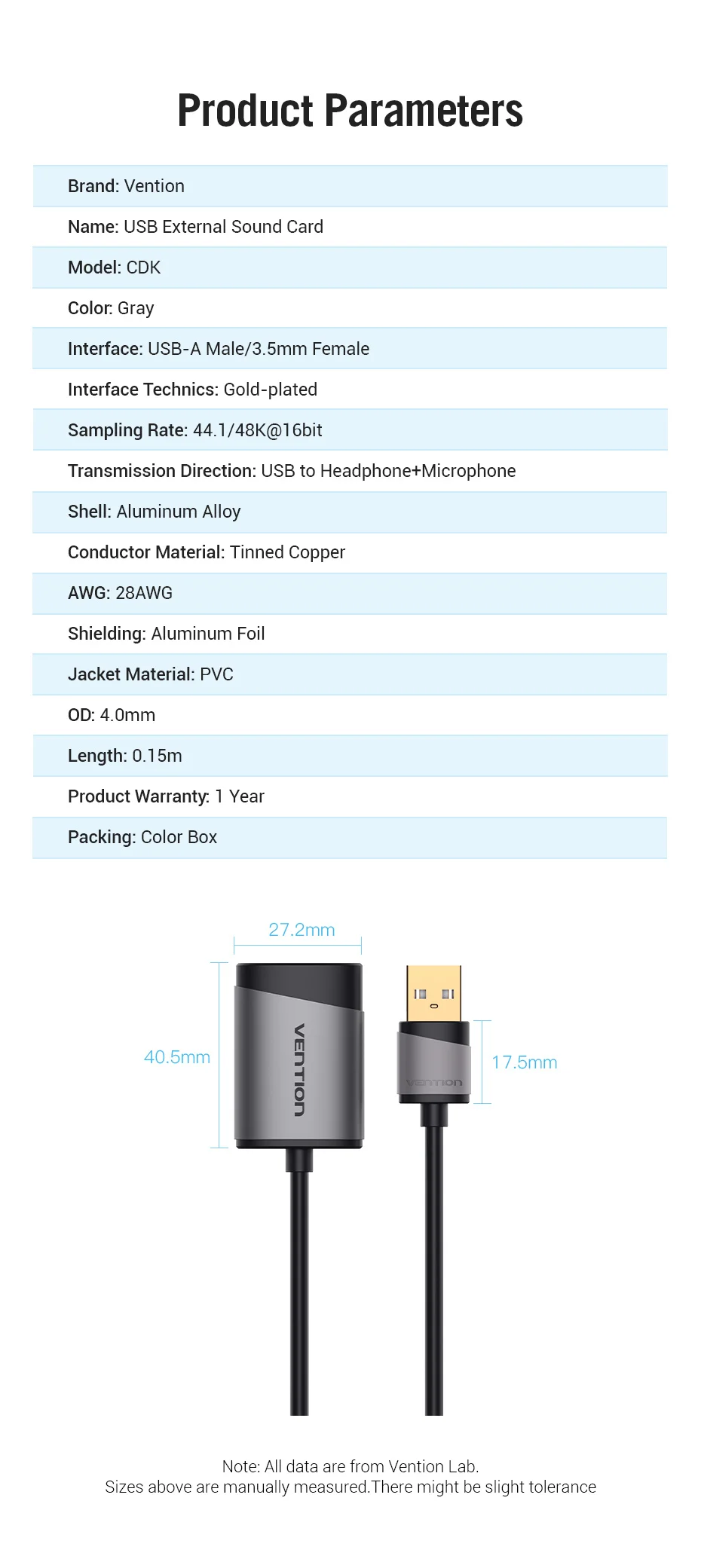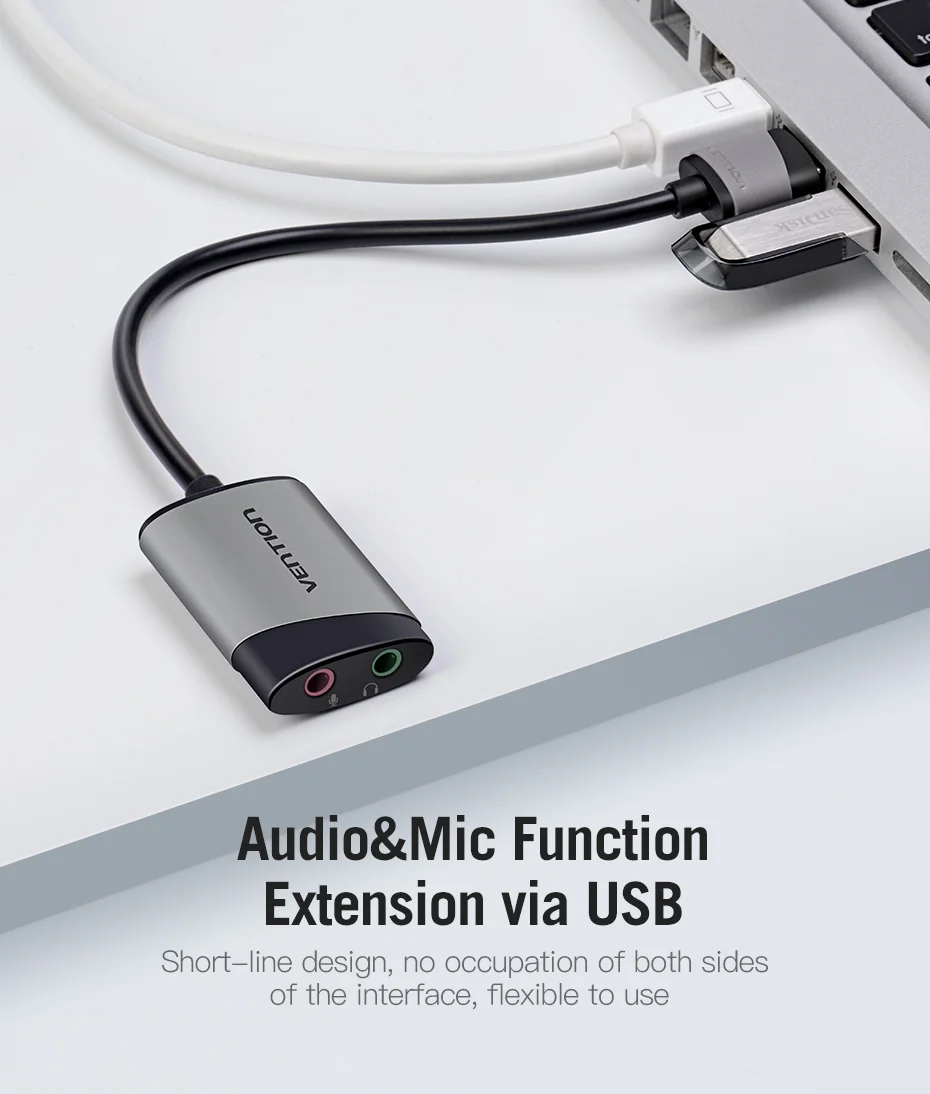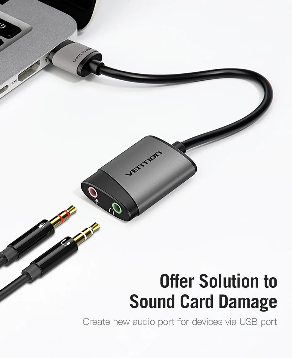 Vention USB External Sound Card USB to 3.5mm Audio Adapter with Microphone for PC Laptop MacBook PS5 Gaming Headset Sound Card